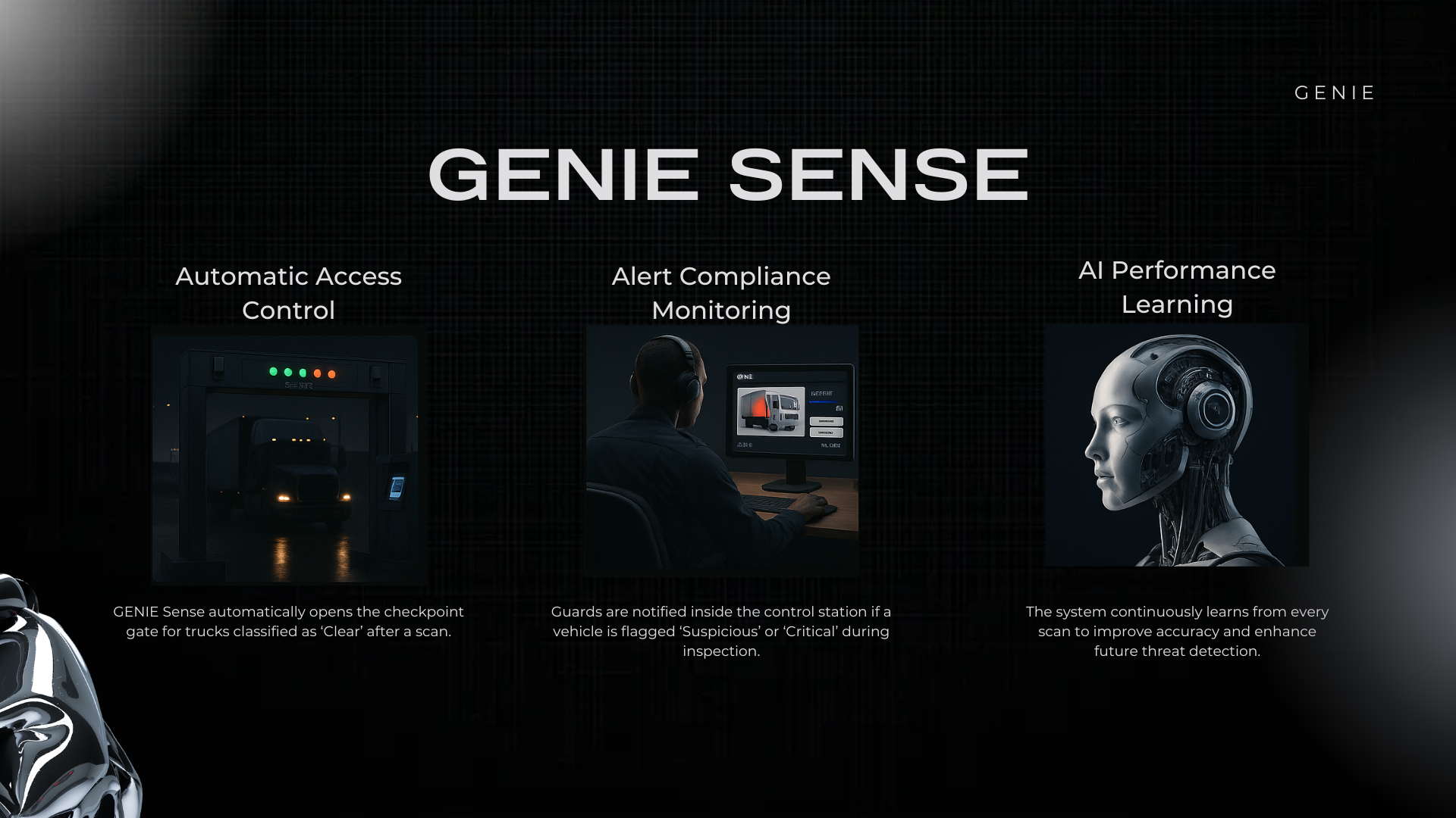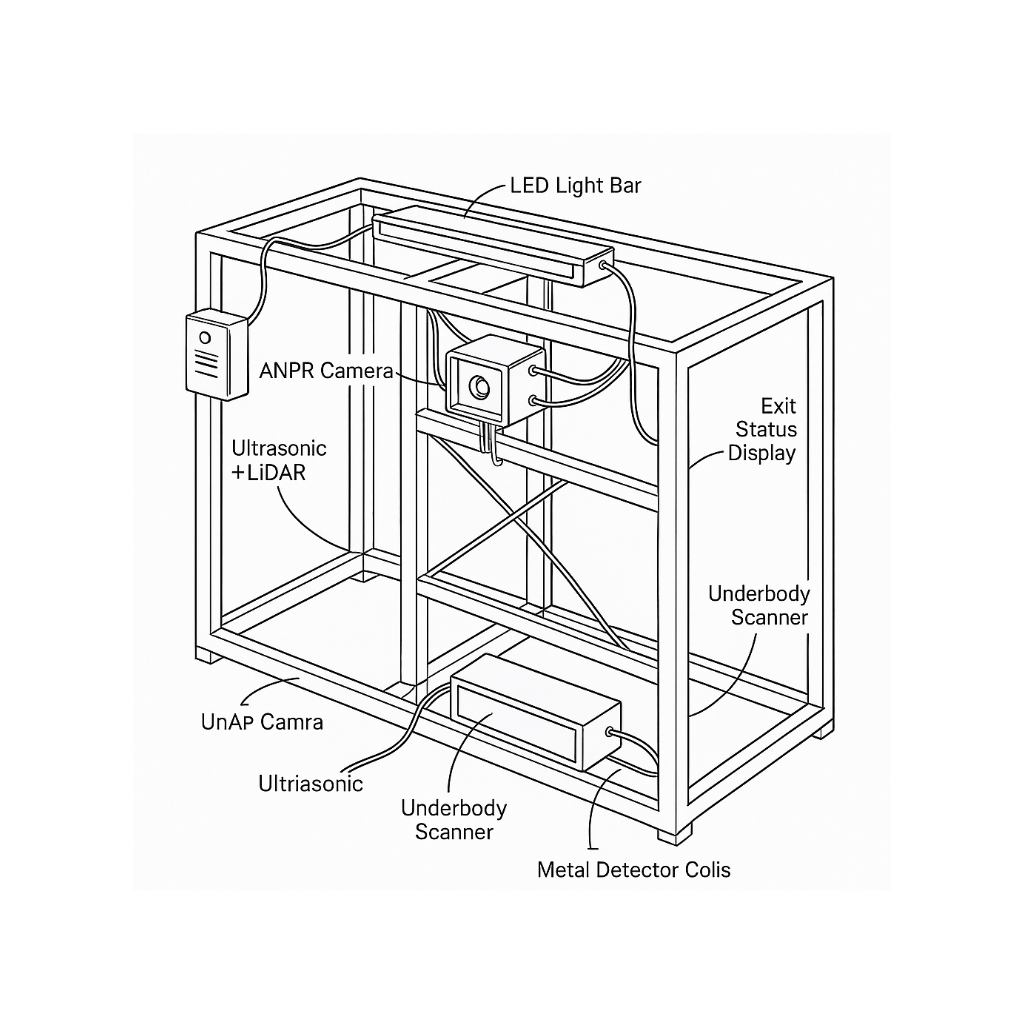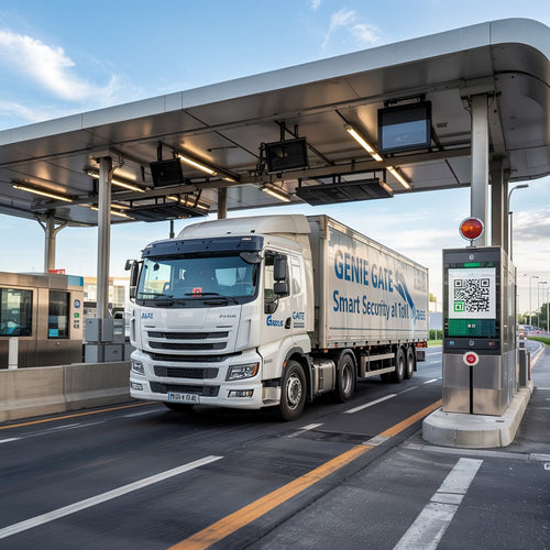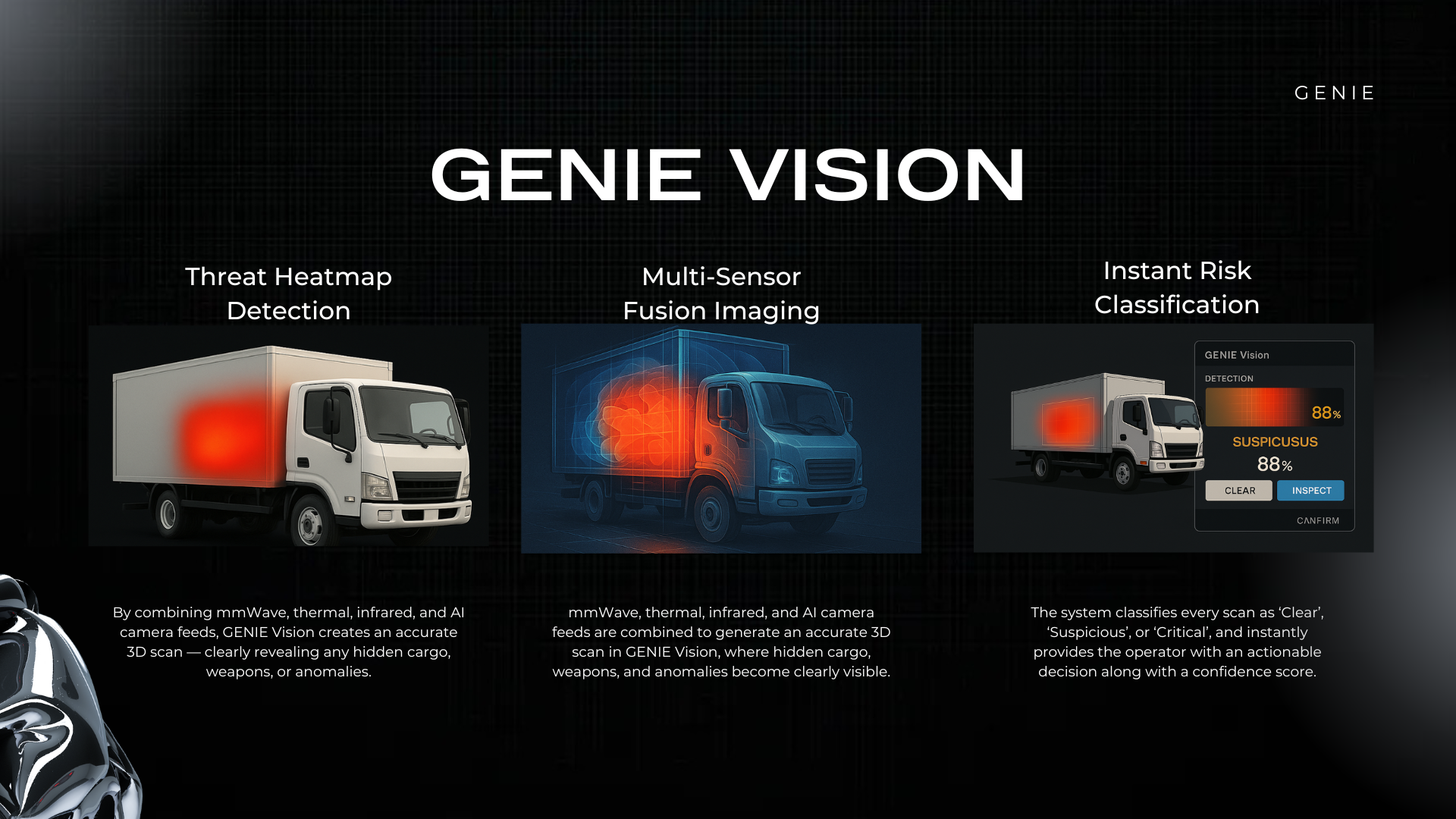 AI-powered Genie Gate scanning trucks in real time using mmWave and heatmap technology to identify suspicious zones without stopping the vehicle.